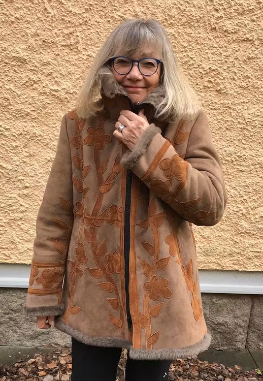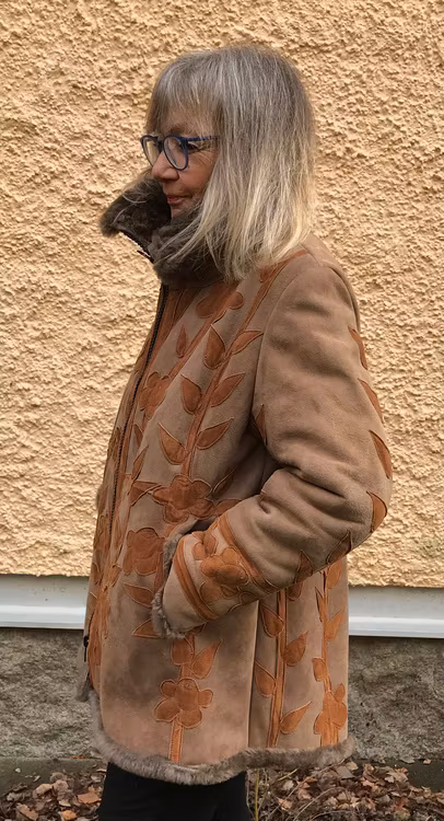 Skön jacka i återbrukad pälsmocka. Alltid varm.