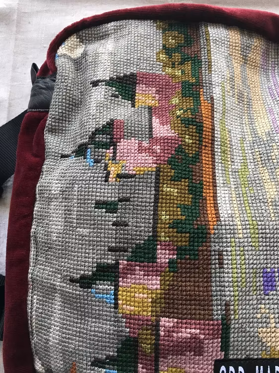 Vacker och praktisk ryggsäck i sammet med återbrukat, unikt handbroderi.