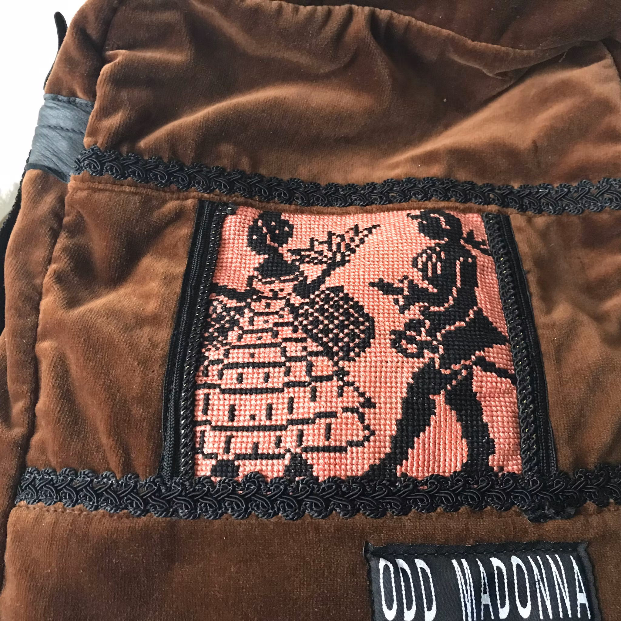 Vacker och praktisk ryggsäck i sammet med återbrukat, unikt handbroderi.