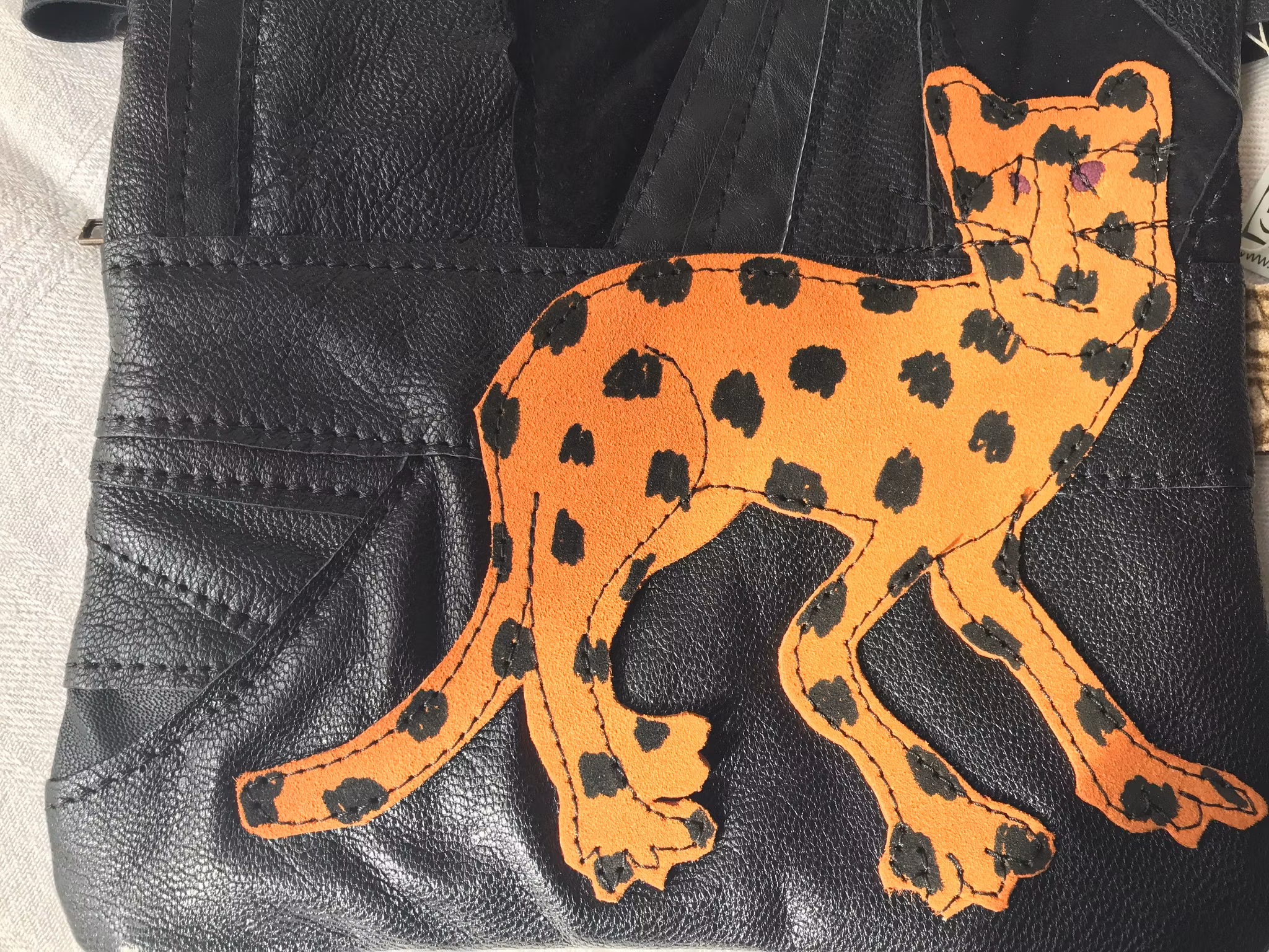 Liten svart skinnväska med leopard i mocka